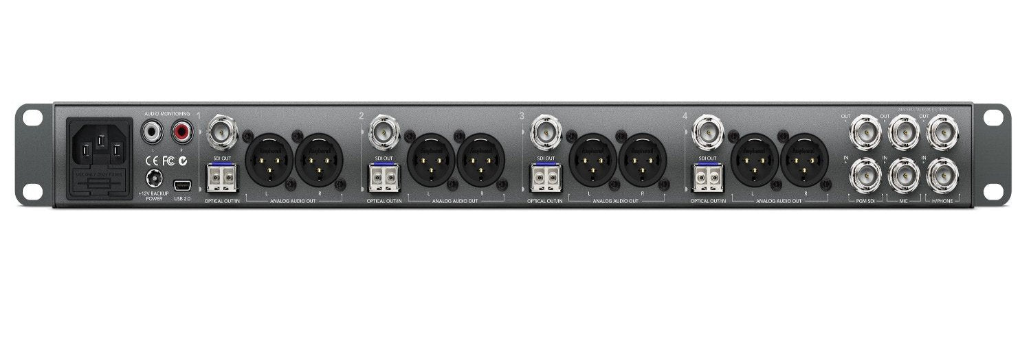 The Blackmagic Design Studio Converter 2 inputs video signals transmitted over optical fiber and converts the signals to SDI for use with video switchers. When used in conjunction with the Blackmagic Design ATEM Camera Converter, you can send video signals up to 28 miles between camera and switcher using available optical fiber cables.