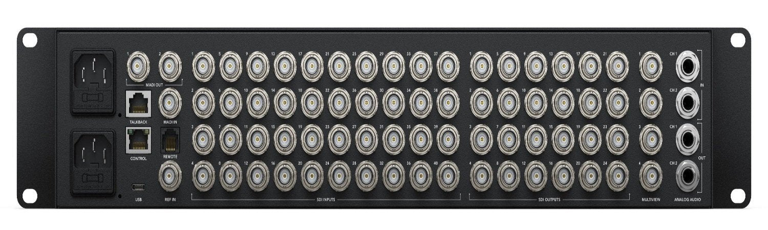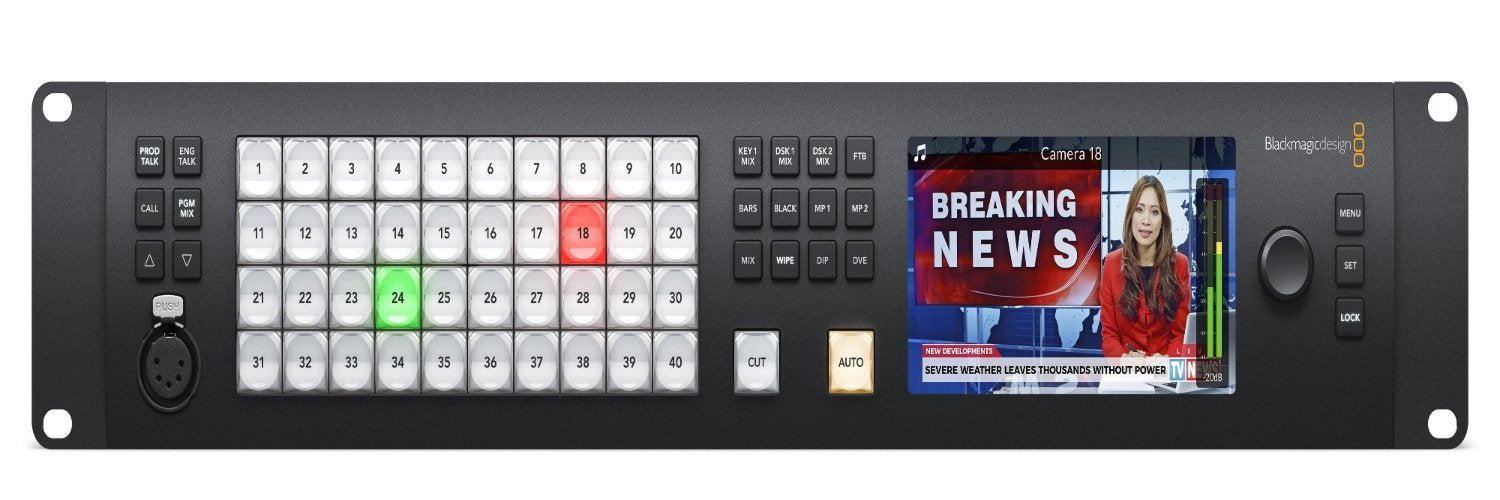 The Blackmagic Design ATEM 4 M/E Constellation HD model doubles the features of the 2 M/E model with 40 x 3G-SDI inputs, 24 x 3G-SDI outputs, 4 DVEs, 16 ATEM Advanced Keyers, 4 multiviews and 2 SuperSource for 12 x DVEs in total.