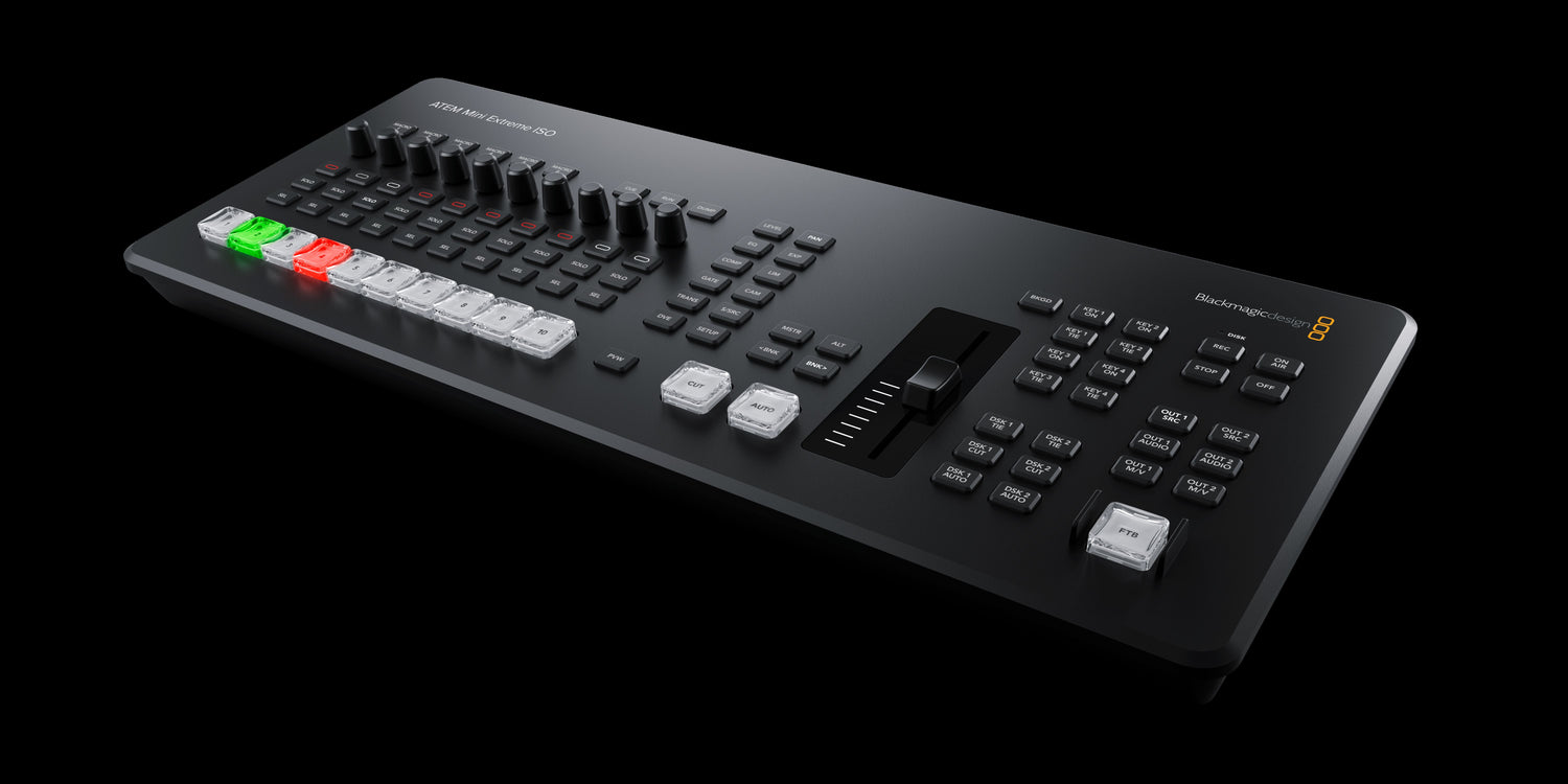 ATEM Mini Extreme ISO G2 is a powerful yet compact live switcher for building a high-end broadcast studio. Get an expanded professional style control panel with built in streaming, 8 standards converted HDMI inputs, 3 independent HDMI outputs, built in streaming engine, multi-view, CFexpress and Thunderbolt for record/playback. There is also 10G Ethernet for fast network storage access, XLR audio inputs, USB webcam, DVE, chroma key, media player and ISO recording of all 8 video inputs.