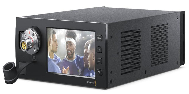 Easily convert SMPTE fiber to 12G-SDI for seamless broadcast integration. The Blackmagic Design Studio Fiber Converter powers remote cameras up to 2 km, supporting return video, control, and power, ideal for professional broadcast setups.